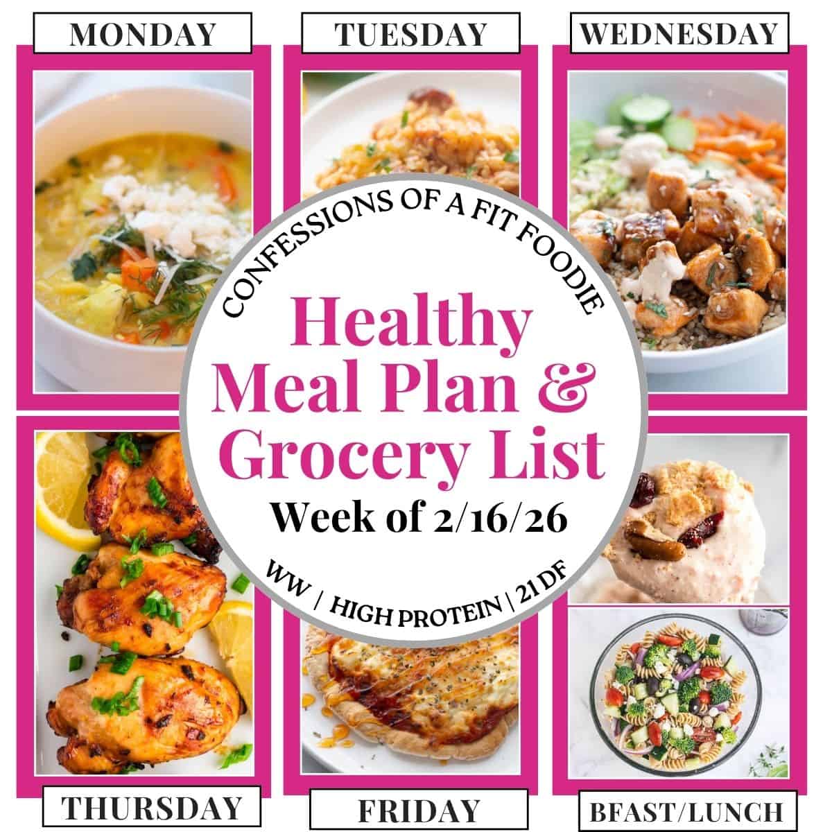 A Healthy Meal Plan with yummy meals perfect for the start of Lent! This meal plan has breakfast, lunch, and 5 dinners to help you plan your week! Plus 21 Day Fix Containers, WW points, and a weekly meal planning spreadsheet included, too.