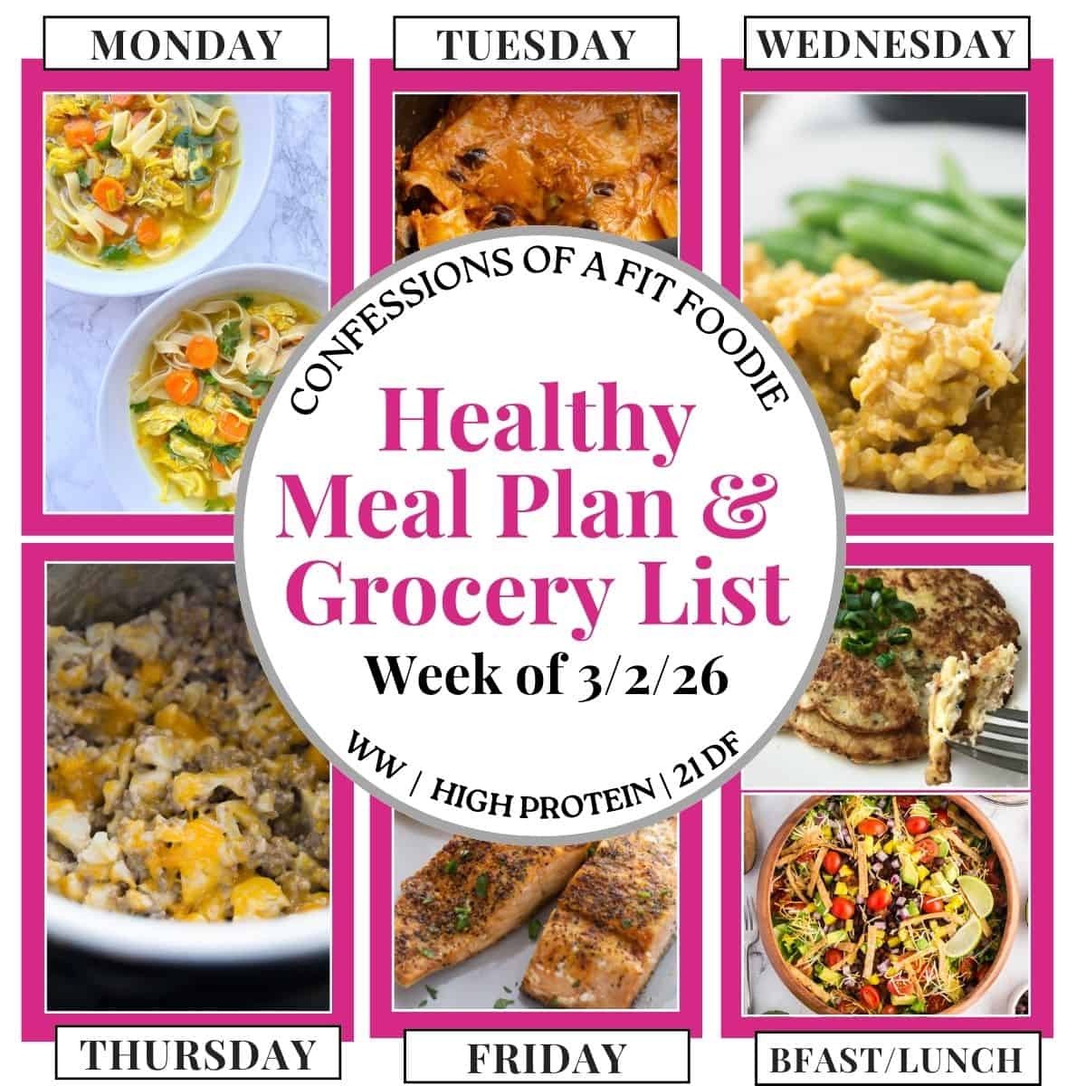 A Healthy Weekly Meal Plan with yummy crowd pleasing dinners using the Instant Pot, Air Fryer, and Slow Cooker! This meal plan has breakfast, lunch, and 5 dinner recipes to help plan your week! Plus 21 Day Fix Containers, WW points, and a meal planning spreadsheet included, too.Â