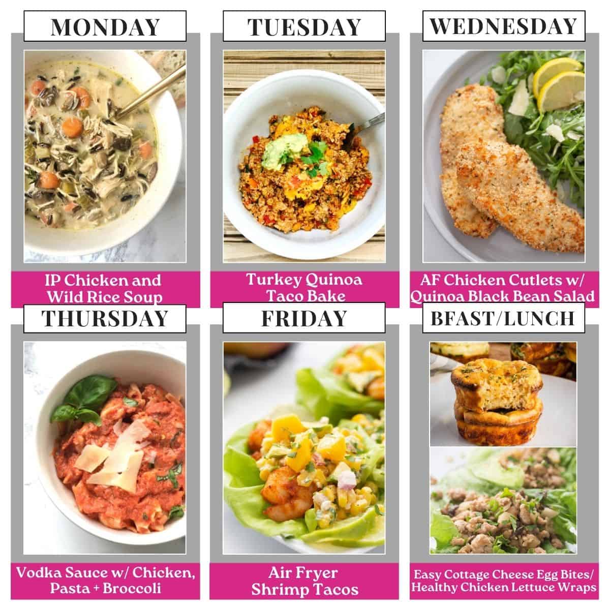 Making a batch of chicken cutlets is a go-to way to have some protein on hand and will be perfect leftover with a pot of Vodka Sauce! This week, Meatless Friday features my favorite Shrimp Tacos! The toppings are insanely delicious! And don’t miss our yummy breakfast choice – Easy Cottage Cheese Egg Bites – high protein and easily customized for your preferences!