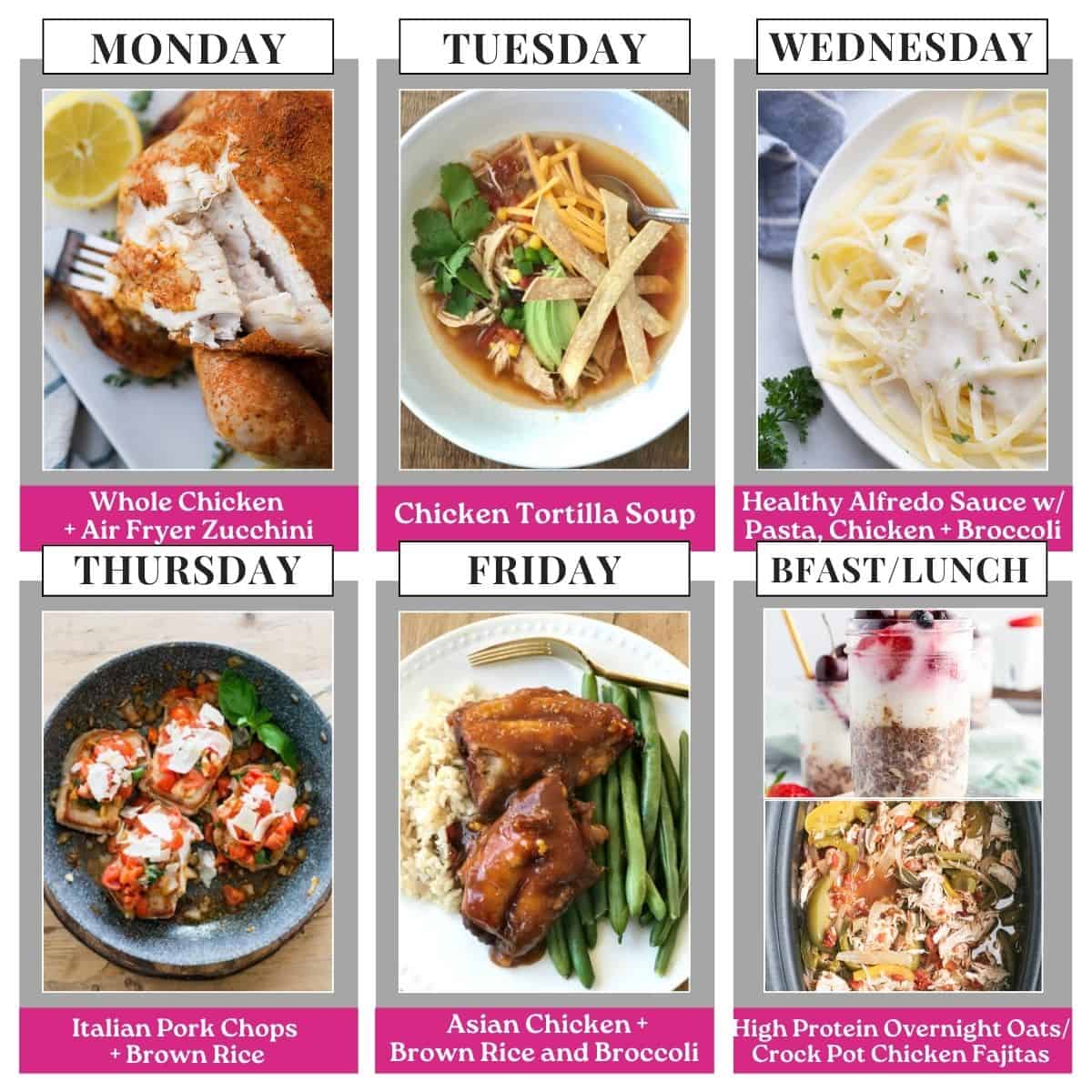 If you have been following full plans, and are new to my weekly meal plans, each week there are five dinners and a breakfast planned out, along with a lunch suggestion.